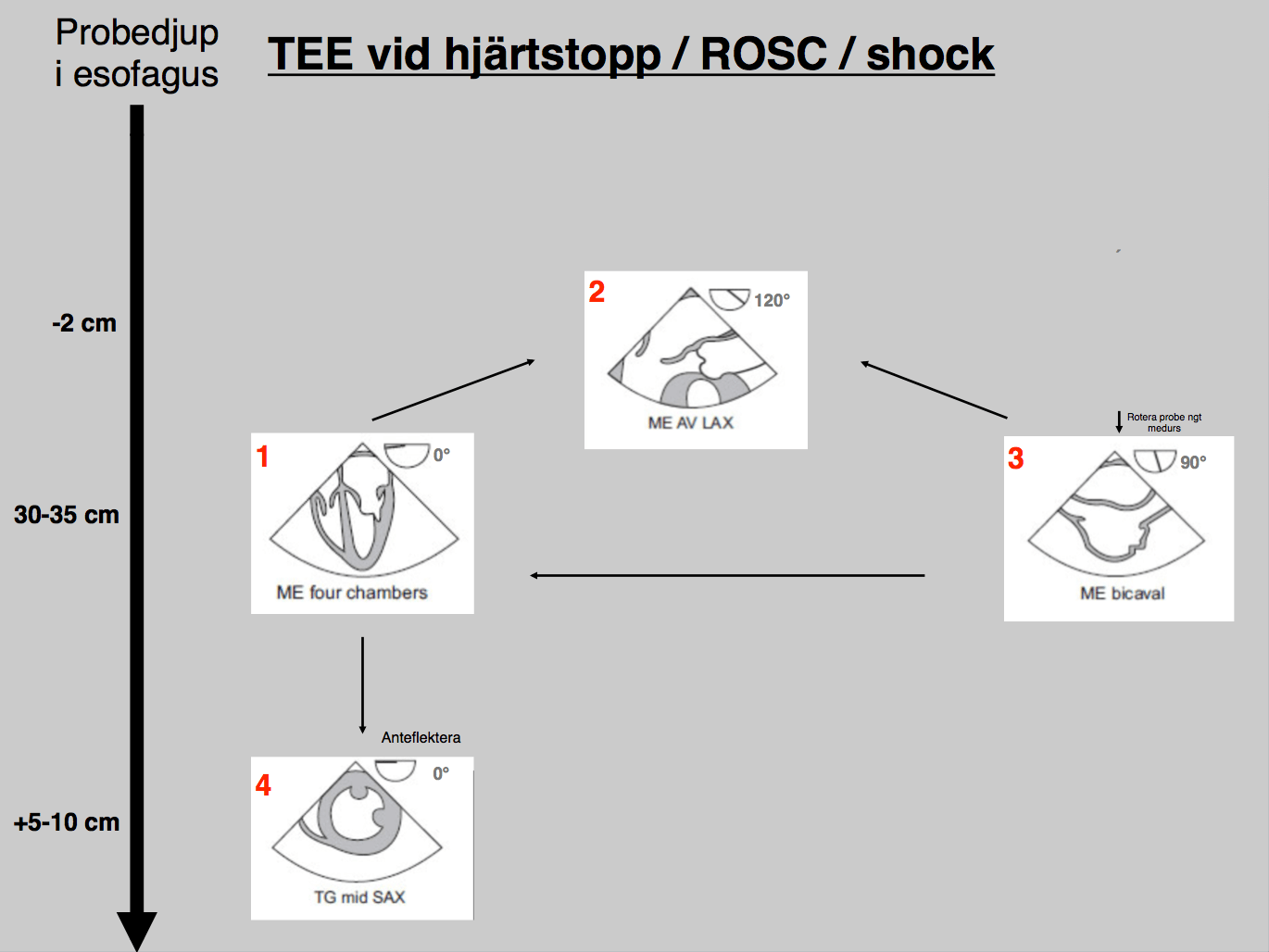 I ett tidigare inlägg berättade jag om hur TEE var till stor hjälp vid handläggningen av ett traumafall. På Karolinskas ultraljudskurs för två veckor sedan föreläste Johan Nordström om en förenklad TEE-algoritm som han använder vid hjärtstopp, svåra traumafall och andra fall av odifferentierad shock.